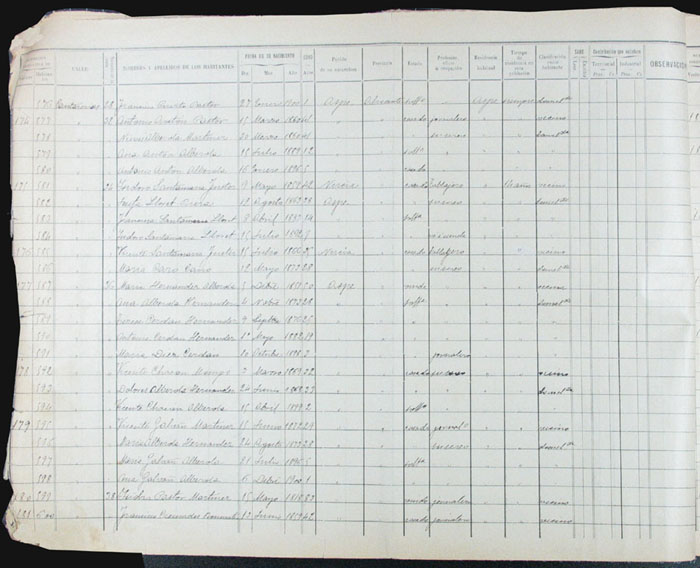 Hojas declaratorias por familias y Padrón de habitantes, 1877