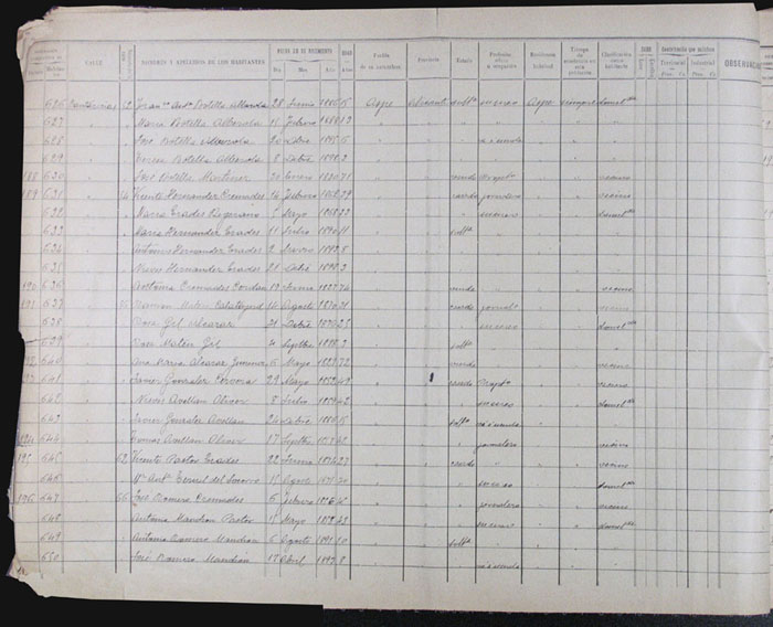 Hojas declaratorias por familias y Padrón de habitantes, 1877