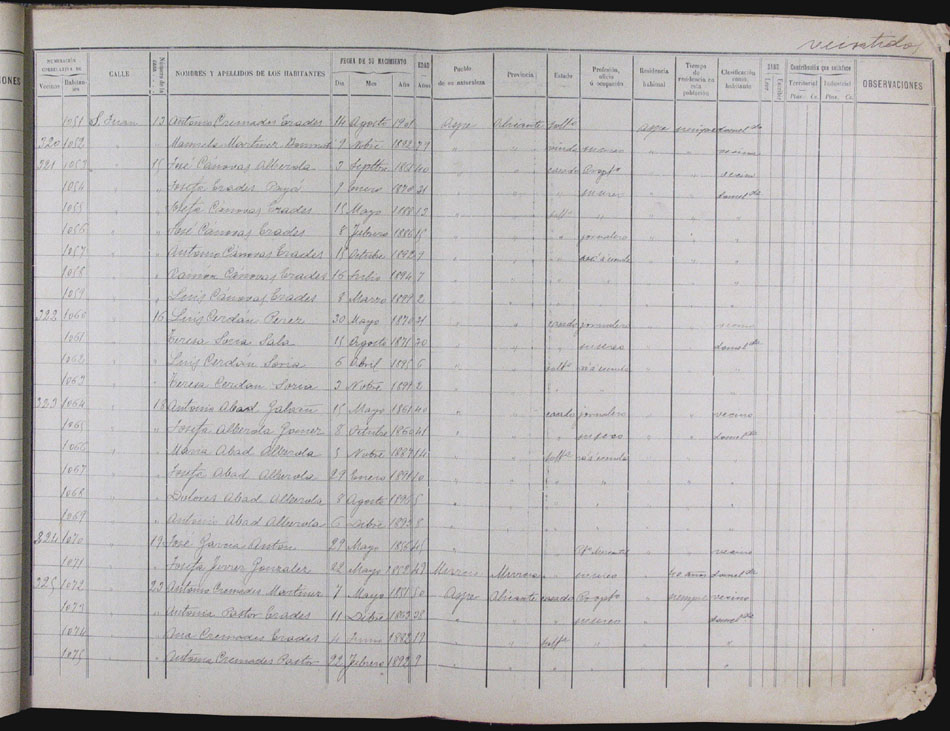 Hojas declaratorias por familias y Padrón de habitantes, 1877