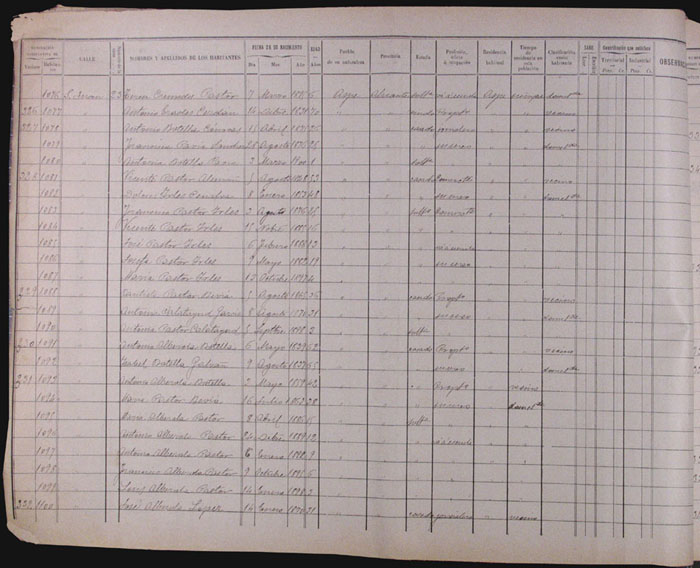 Hojas declaratorias por familias y Padrón de habitantes, 1877