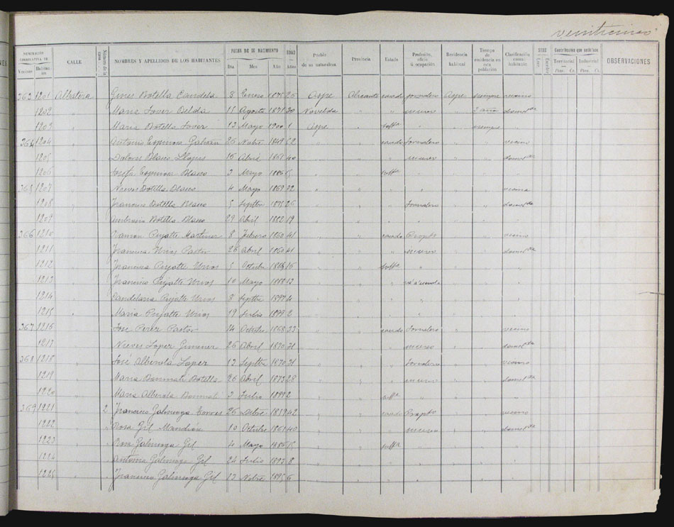 Hojas declaratorias por familias y Padrón de habitantes, 1877