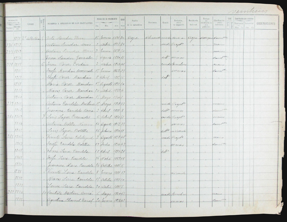 Hojas declaratorias por familias y Padrón de habitantes, 1877