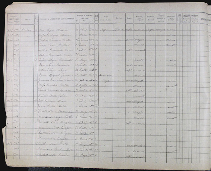 Hojas declaratorias por familias y Padrón de habitantes, 1877