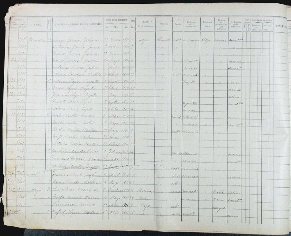 Hojas declaratorias por familias y Padrón de habitantes, 1877