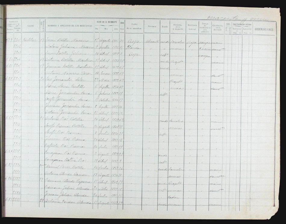 Hojas declaratorias por familias y Padrón de habitantes, 1877
