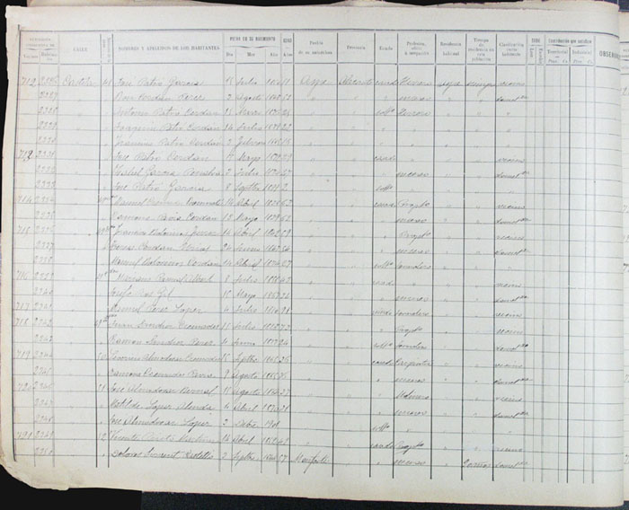 Hojas declaratorias por familias y Padrón de habitantes, 1877