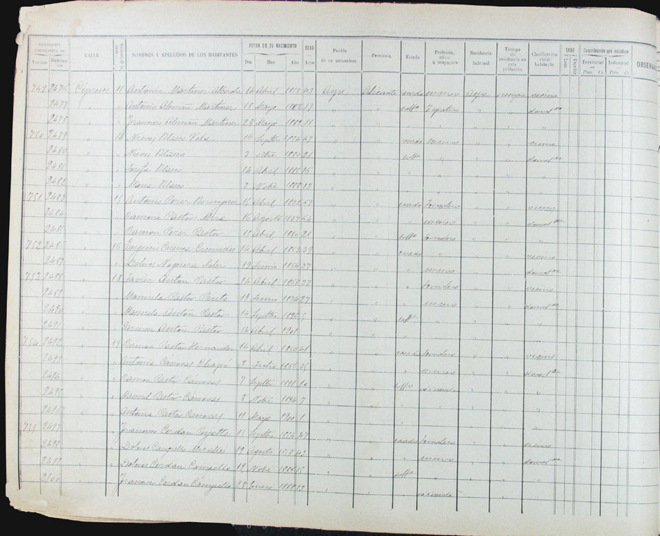 Hojas declaratorias por familias y Padrón de habitantes, 1877