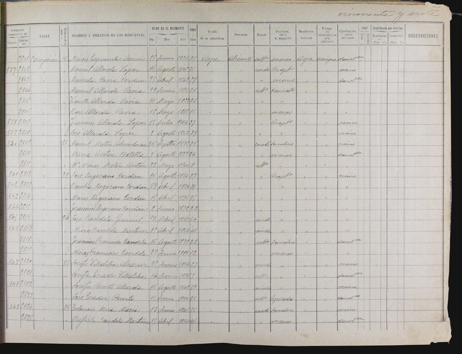 Hojas declaratorias por familias y Padrón de habitantes, 1877