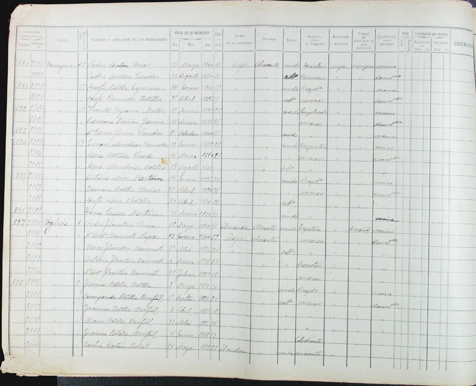Hojas declaratorias por familias y Padrón de habitantes, 1877