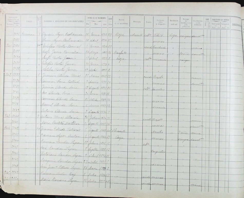 Hojas declaratorias por familias y Padrón de habitantes, 1877