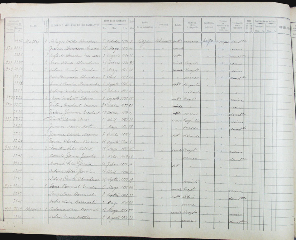 Hojas declaratorias por familias y Padrón de habitantes, 1877