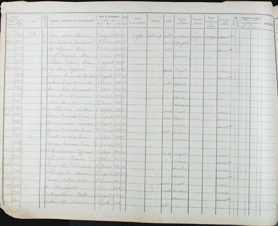 Hojas declaratorias por familias y Padrón de habitantes, 1877