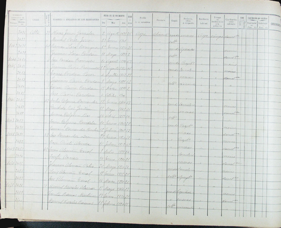 Hojas declaratorias por familias y Padrón de habitantes, 1877