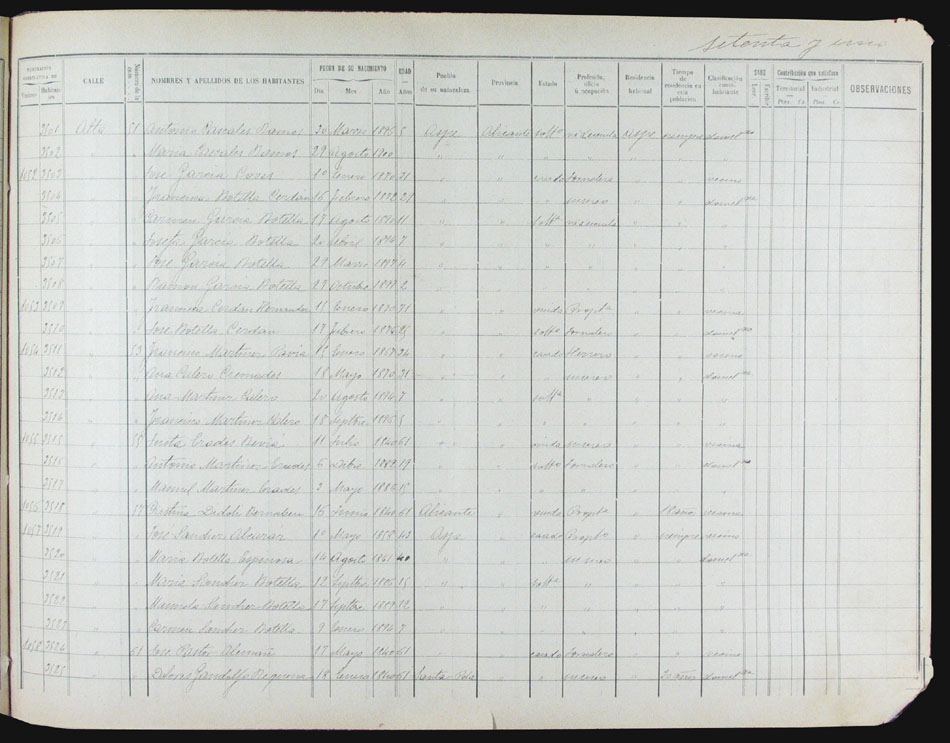 Hojas declaratorias por familias y Padrón de habitantes, 1877