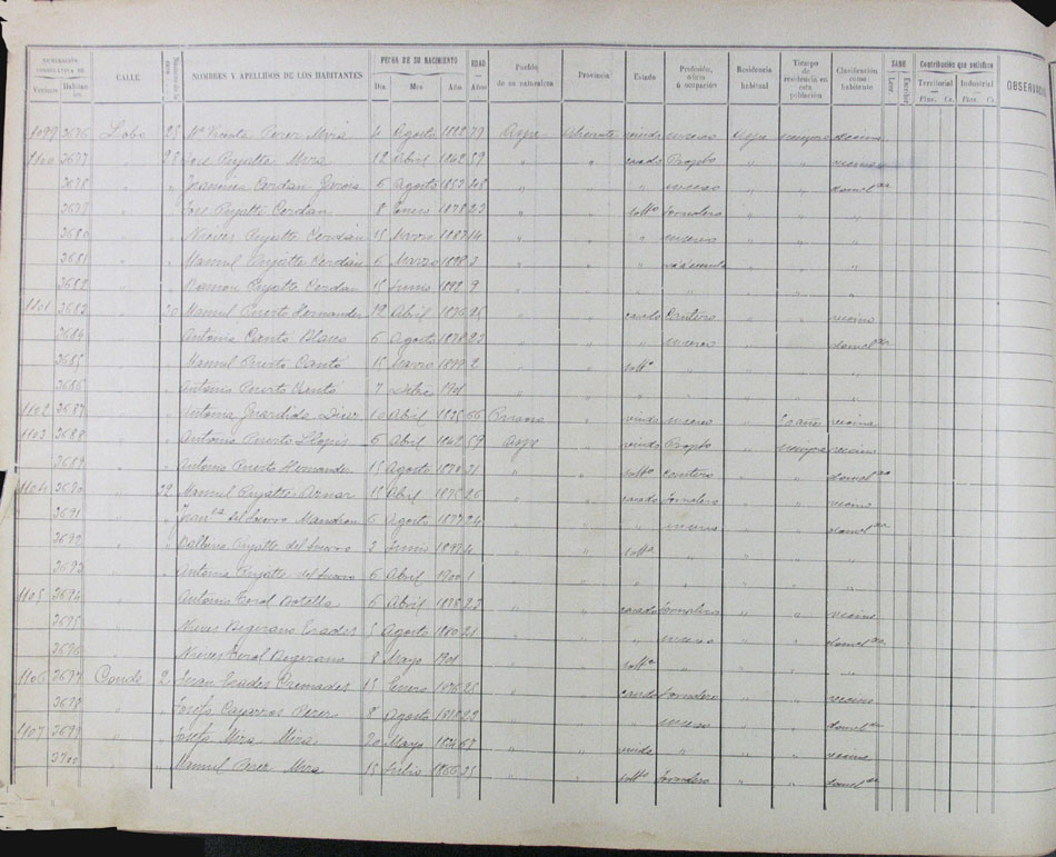 Hojas declaratorias por familias y Padrón de habitantes, 1877