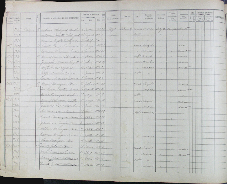Hojas declaratorias por familias y Padrón de habitantes, 1877
