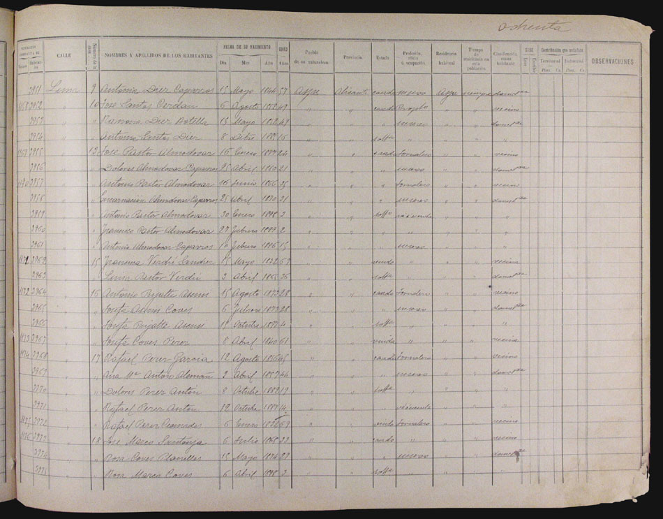 Hojas declaratorias por familias y Padrón de habitantes, 1877