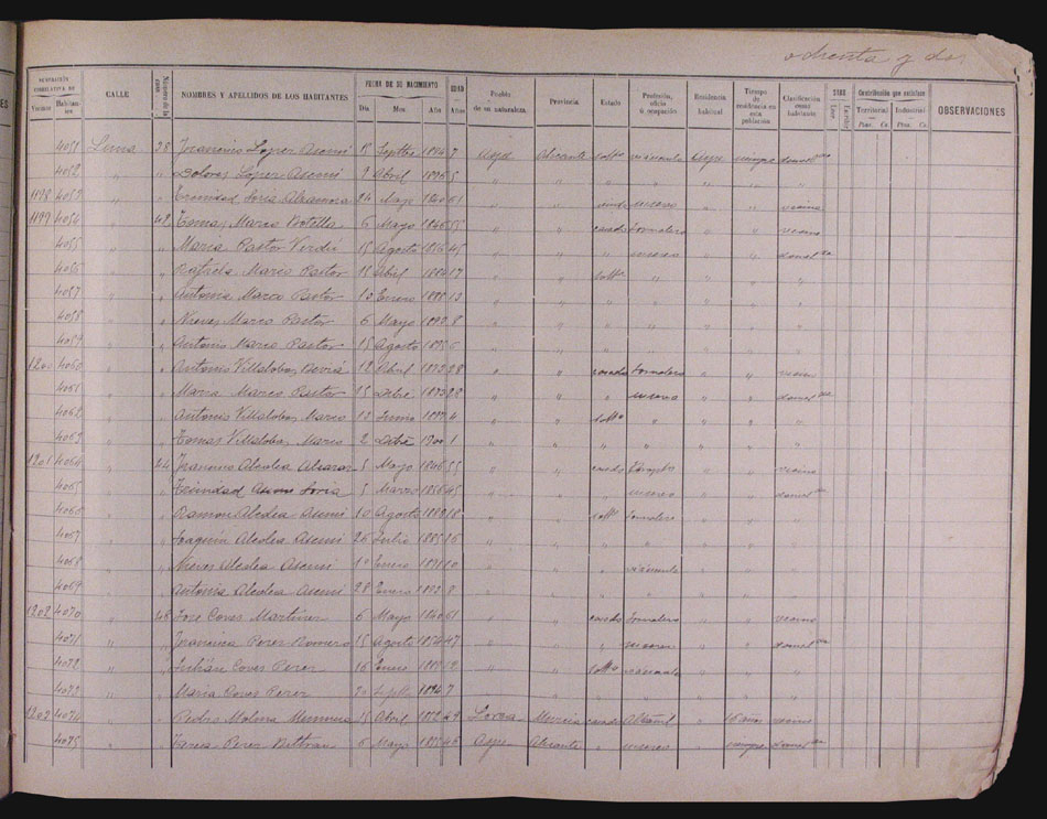 Hojas declaratorias por familias y Padrón de habitantes, 1877