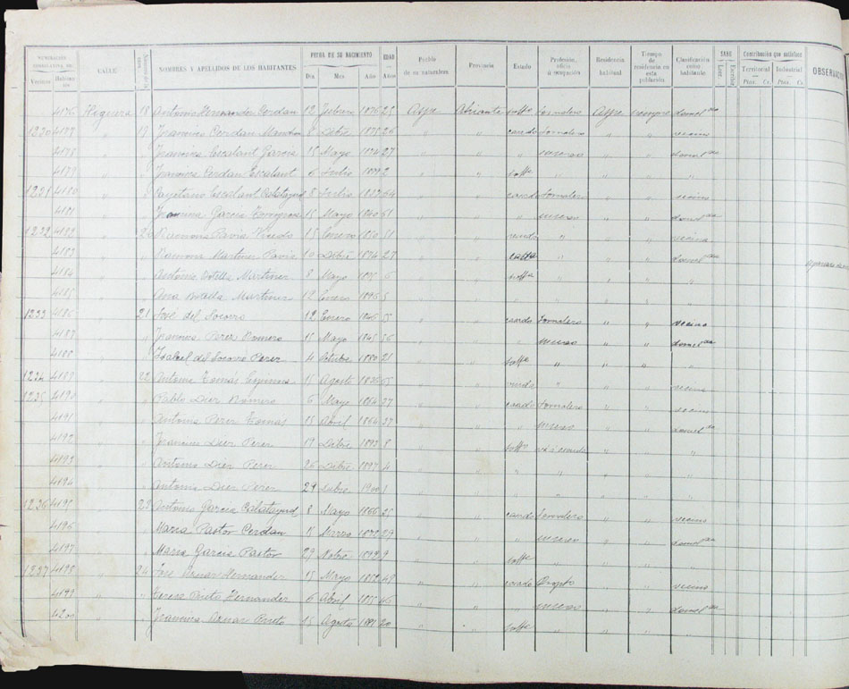 Hojas declaratorias por familias y Padrón de habitantes, 1877