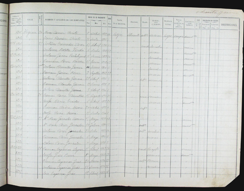 Hojas declaratorias por familias y Padrón de habitantes, 1877