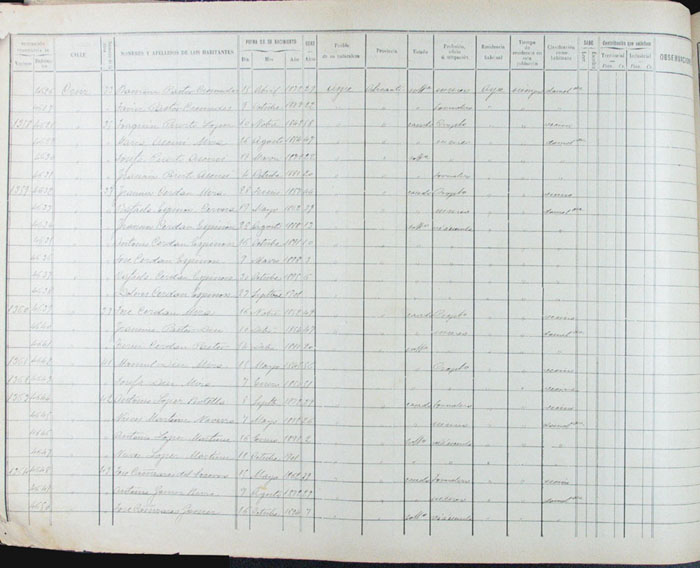 Hojas declaratorias por familias y Padrón de habitantes, 1877