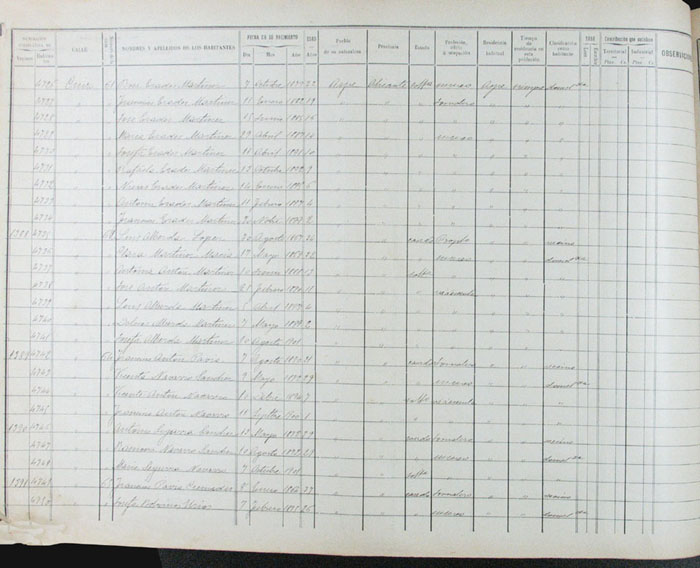 Hojas declaratorias por familias y Padrón de habitantes, 1877