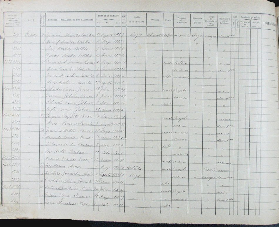 Hojas declaratorias por familias y Padrón de habitantes, 1877