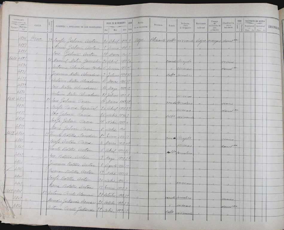 Hojas declaratorias por familias y Padrón de habitantes, 1877