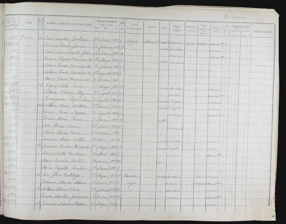 Hojas declaratorias por familias y Padrón de habitantes, 1877