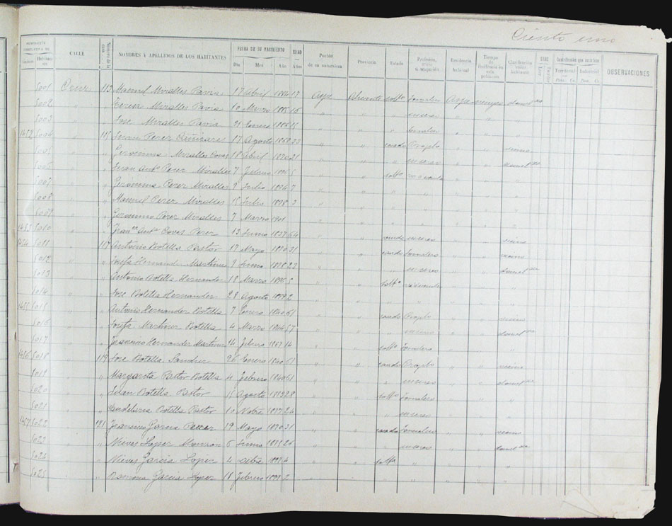 Hojas declaratorias por familias y Padrón de habitantes, 1877