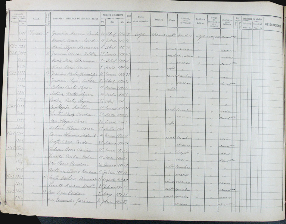 Hojas declaratorias por familias y Padrón de habitantes, 1877