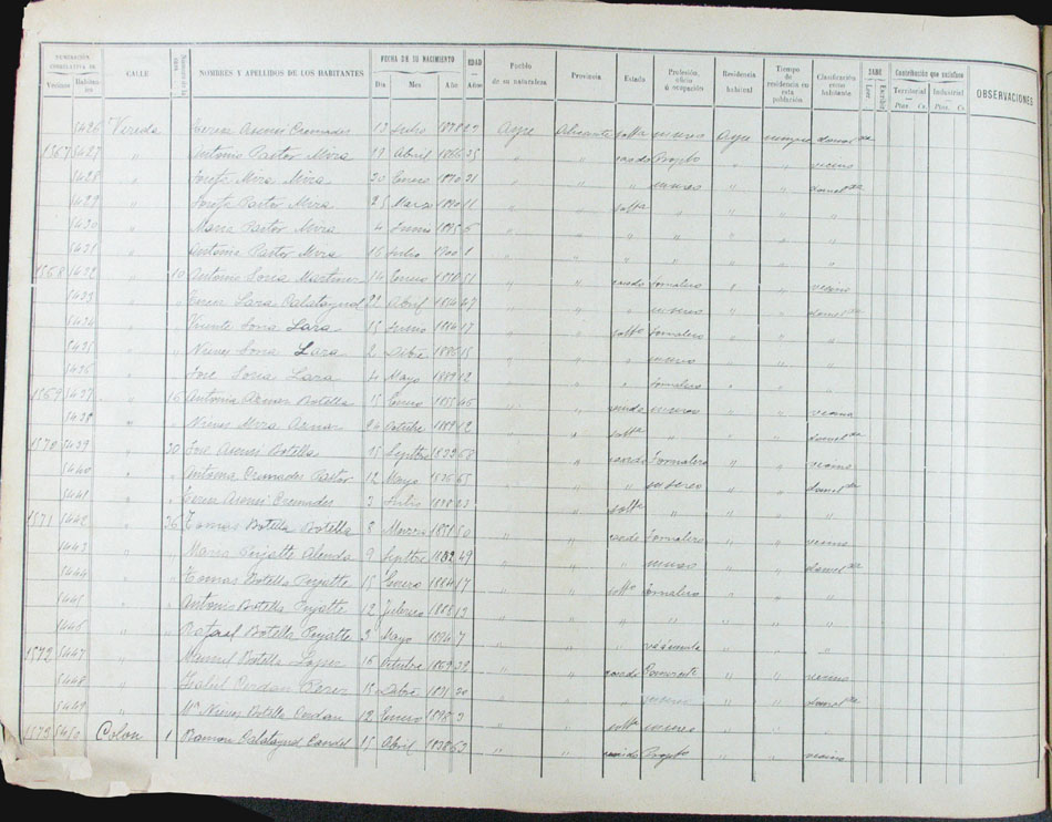 Hojas declaratorias por familias y Padrón de habitantes, 1877