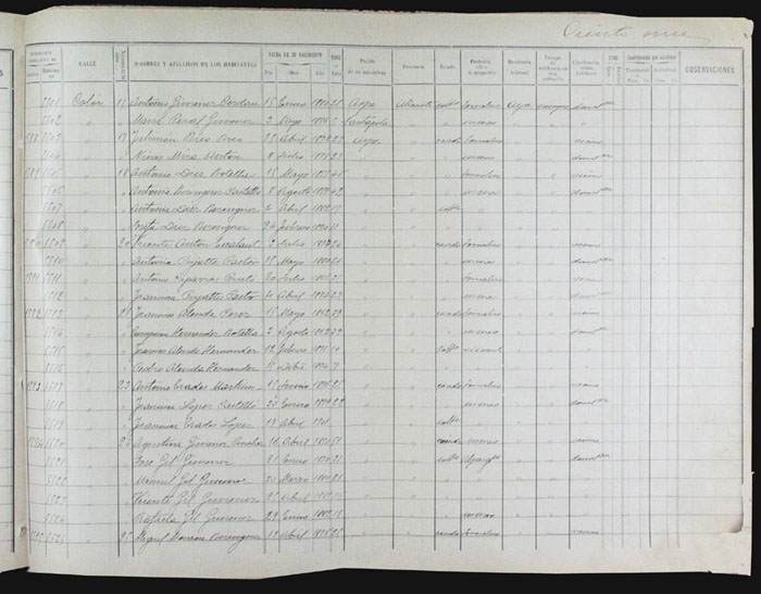 Hojas declaratorias por familias y Padrón de habitantes, 1877