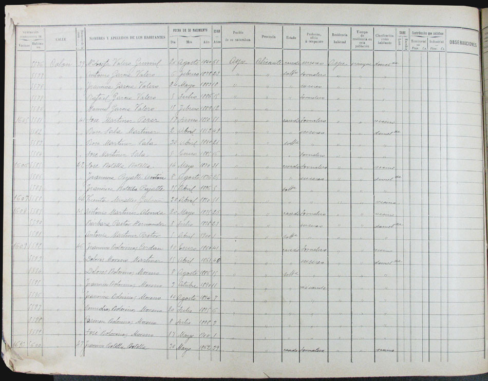 Hojas declaratorias por familias y Padrón de habitantes, 1877