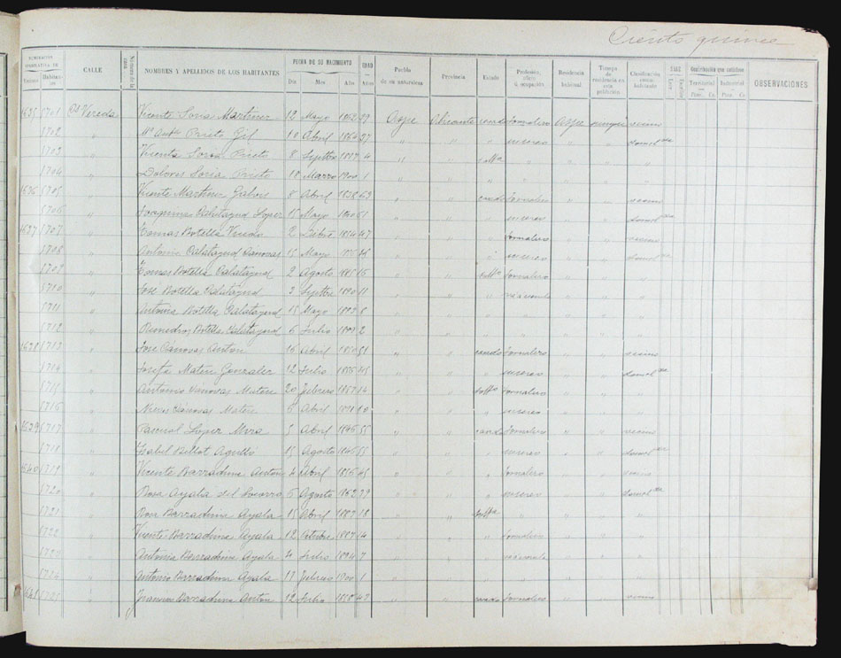 Hojas declaratorias por familias y Padrón de habitantes, 1877