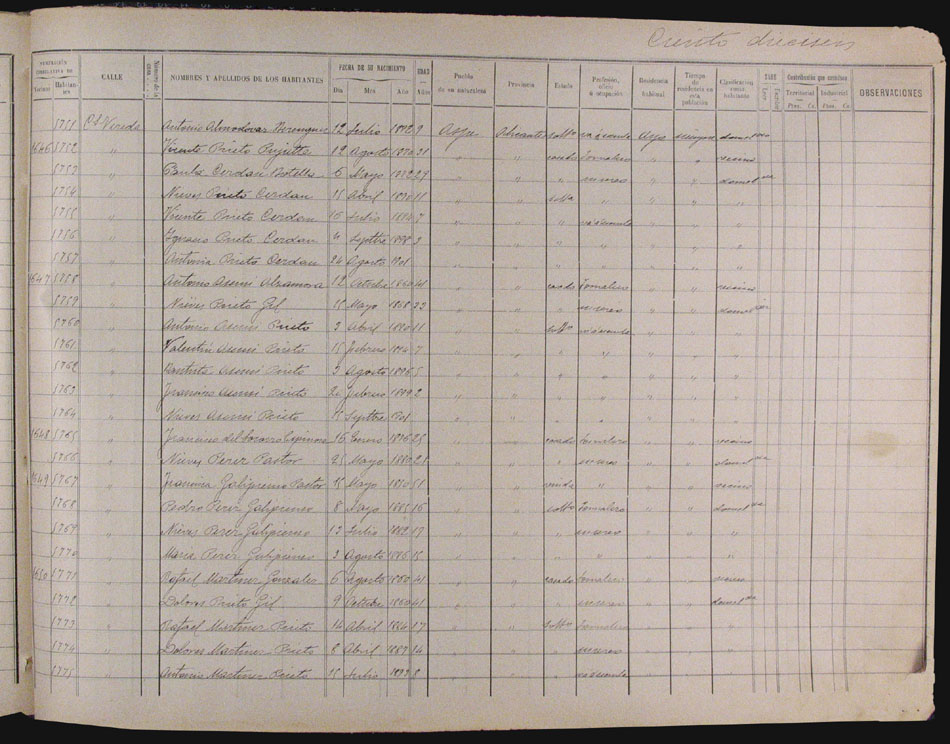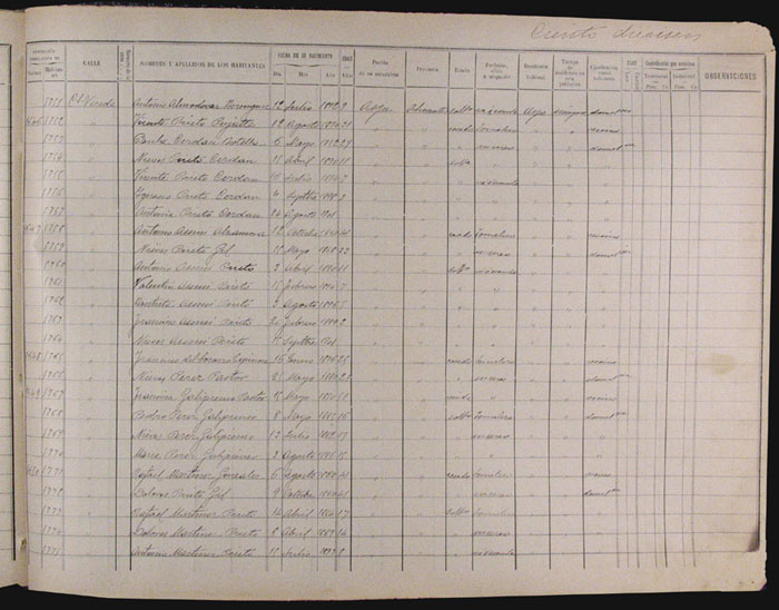 Hojas declaratorias por familias y Padrón de habitantes, 1877