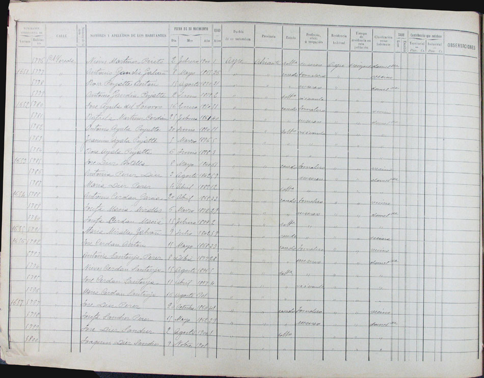 Hojas declaratorias por familias y Padrón de habitantes, 1877