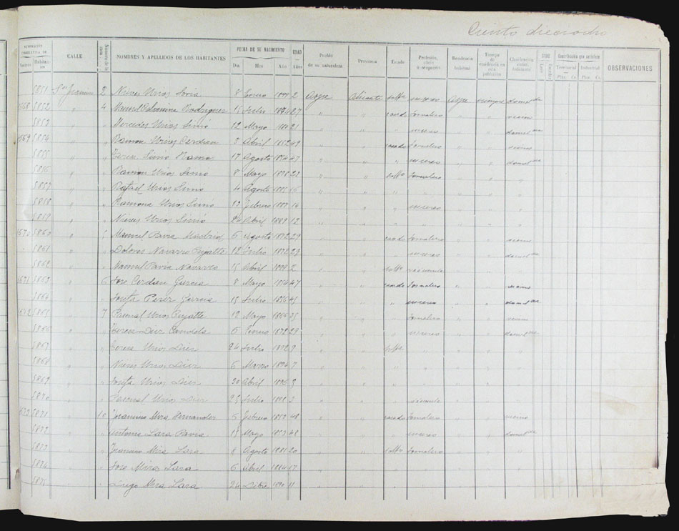 Hojas declaratorias por familias y Padrón de habitantes, 1877
