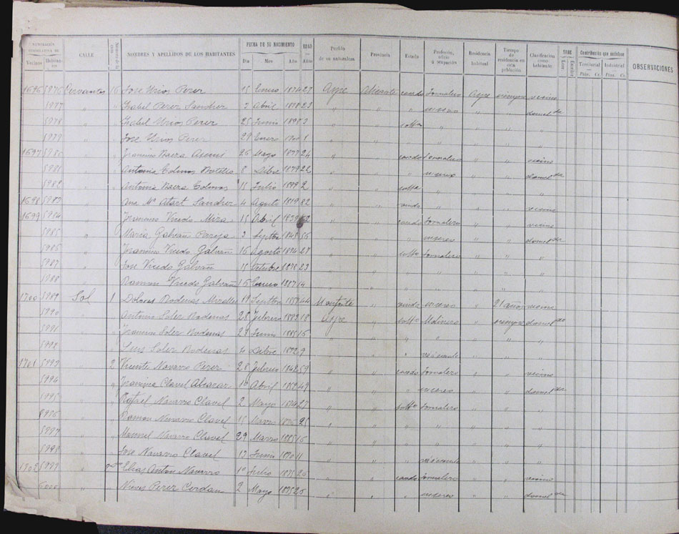 Hojas declaratorias por familias y Padrón de habitantes, 1877
