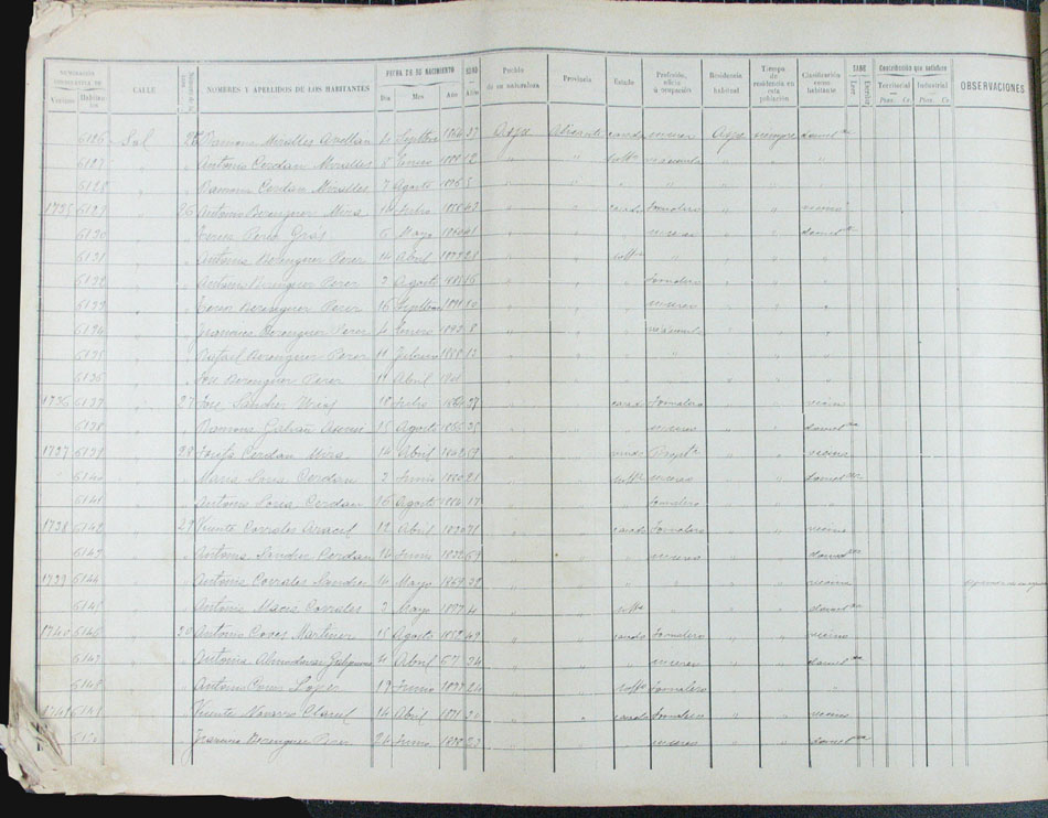 Hojas declaratorias por familias y Padrón de habitantes, 1877