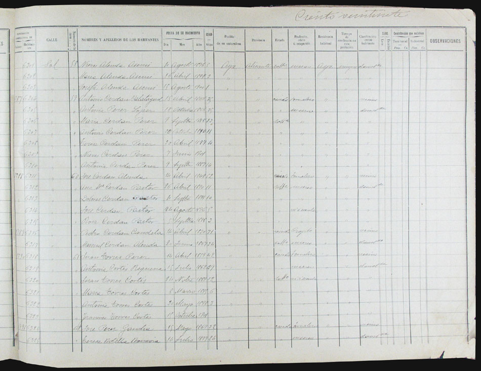 Hojas declaratorias por familias y Padrón de habitantes, 1877