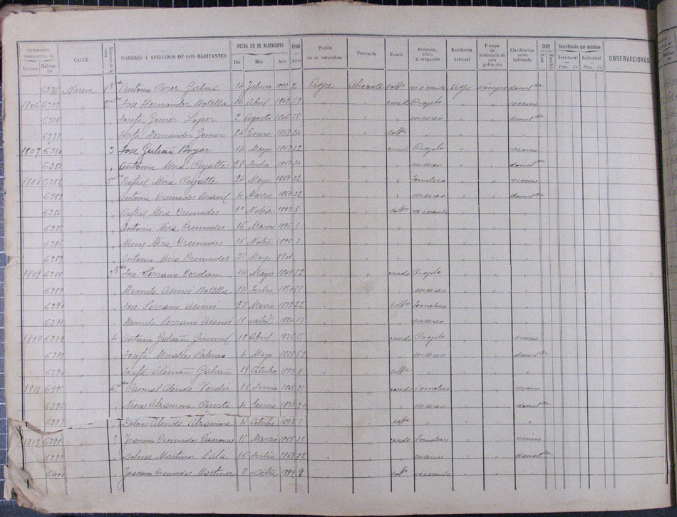 Hojas declaratorias por familias y Padrón de habitantes, 1877