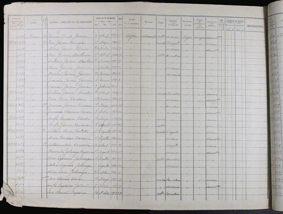 Hojas declaratorias por familias y Padrón de habitantes, 1877