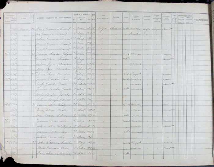 Hojas declaratorias por familias y Padrón de habitantes, 1877