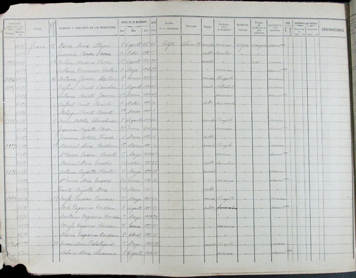 Hojas declaratorias por familias y Padrón de habitantes, 1877