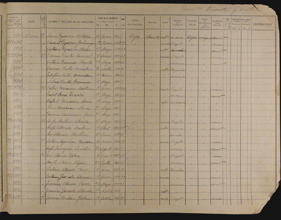 Hojas declaratorias por familias y Padrón de habitantes, 1877