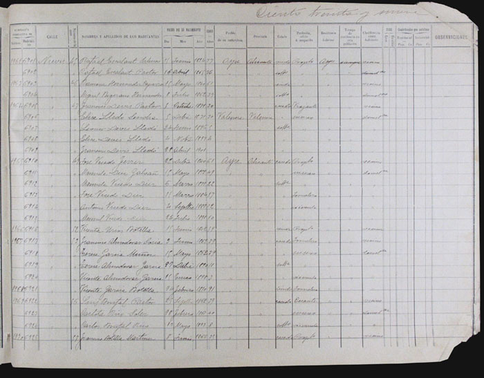 Hojas declaratorias por familias y Padrón de habitantes, 1877