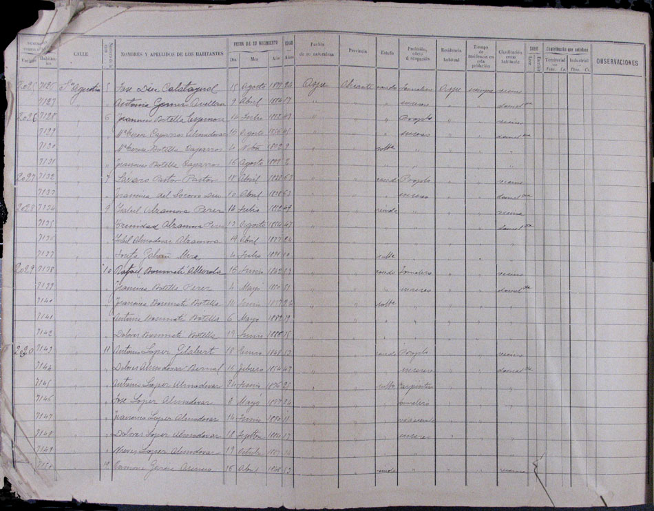 Hojas declaratorias por familias y Padrón de habitantes, 1877