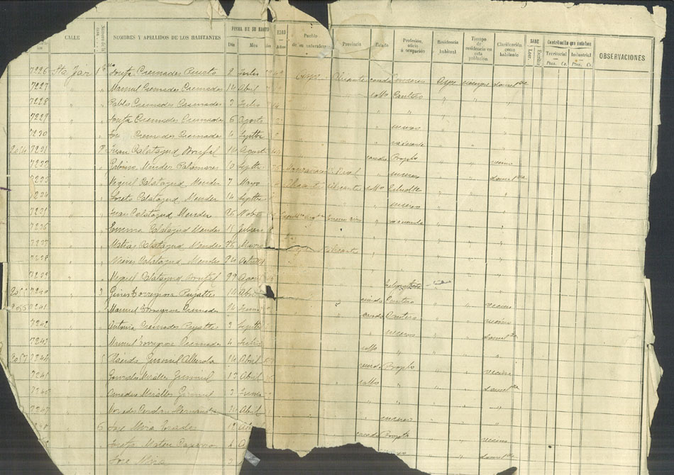 Hojas declaratorias por familias y Padrón de habitantes, 1877