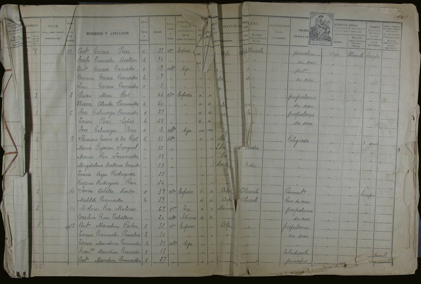 Padrón de habitantes, 1900